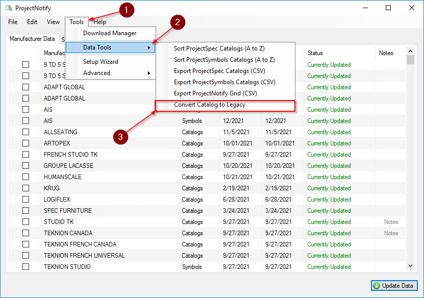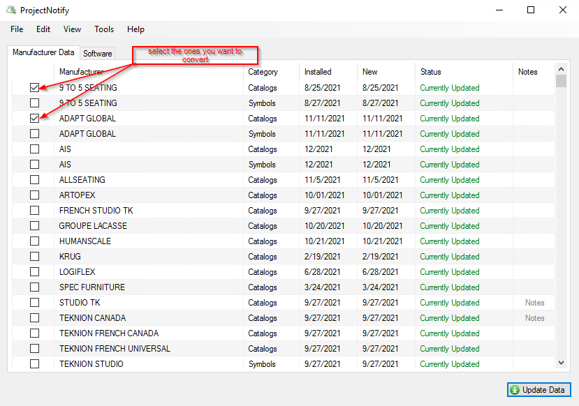 To do this we have the “Project Notify” application which allows to manage all the catalogs
