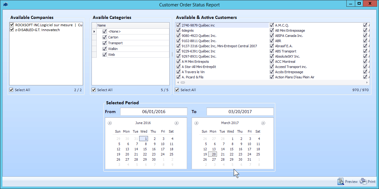 Customer Order Status Report