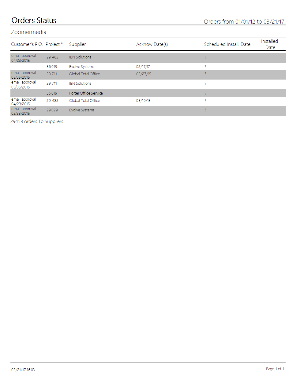 List of all PO`s including a summary of their current status.