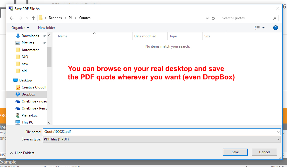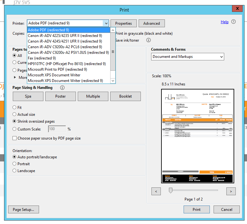 The printing box will open. In the Printer field, you’ll see all your local printers. Just choose the one you’d like to use for a print. If you want to send the quote by email, choose the PDF option, then click on Print.