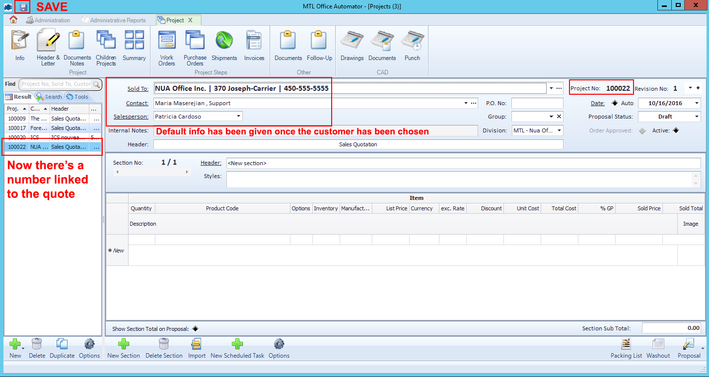As you can read in the last snapshot, a new project that hasn’t been saved yet hasn’t a quote number yet.