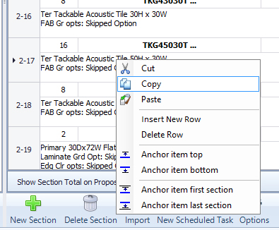 If you want to delete or copy an item, right-click on its line and choose the option you want.