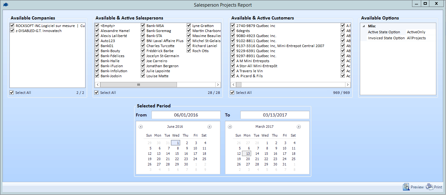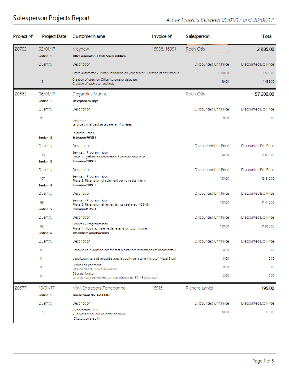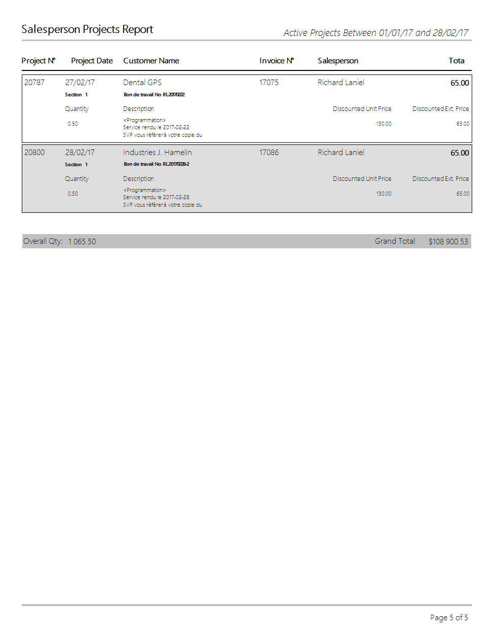 Salesperson Projects Report