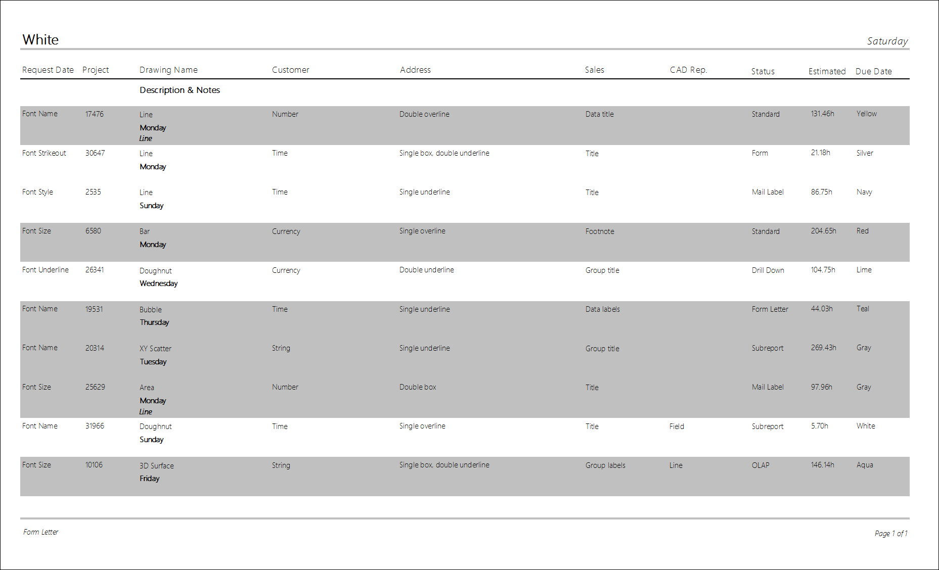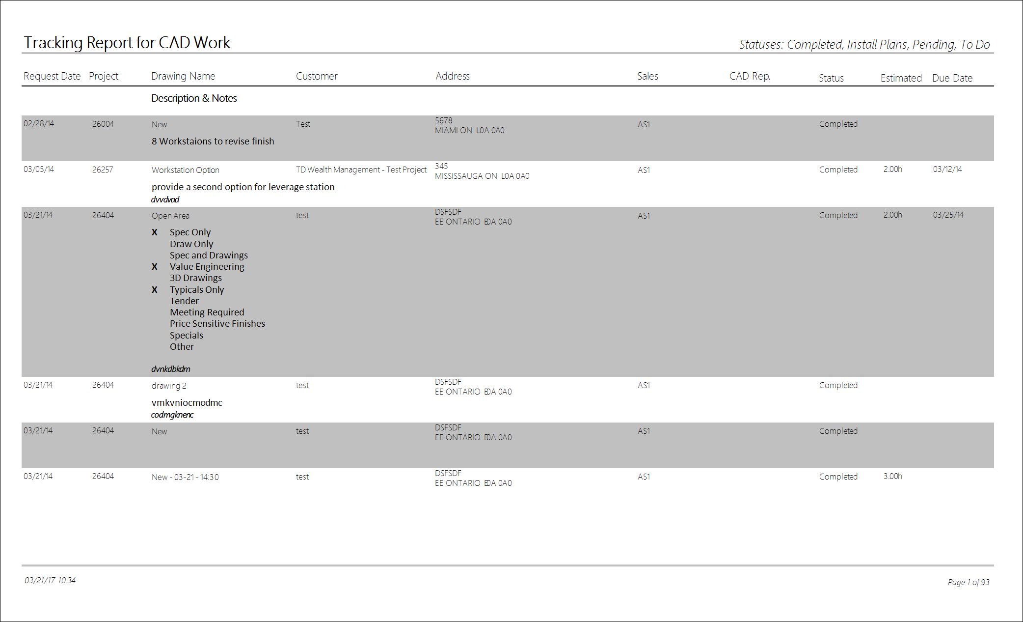 This report gives a list of CAD project with including the following statuses : completed, install plans, pending and to-do