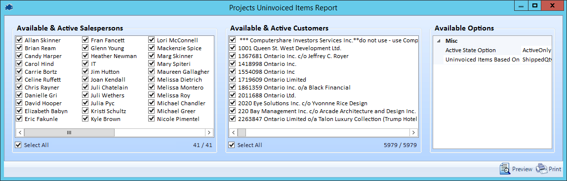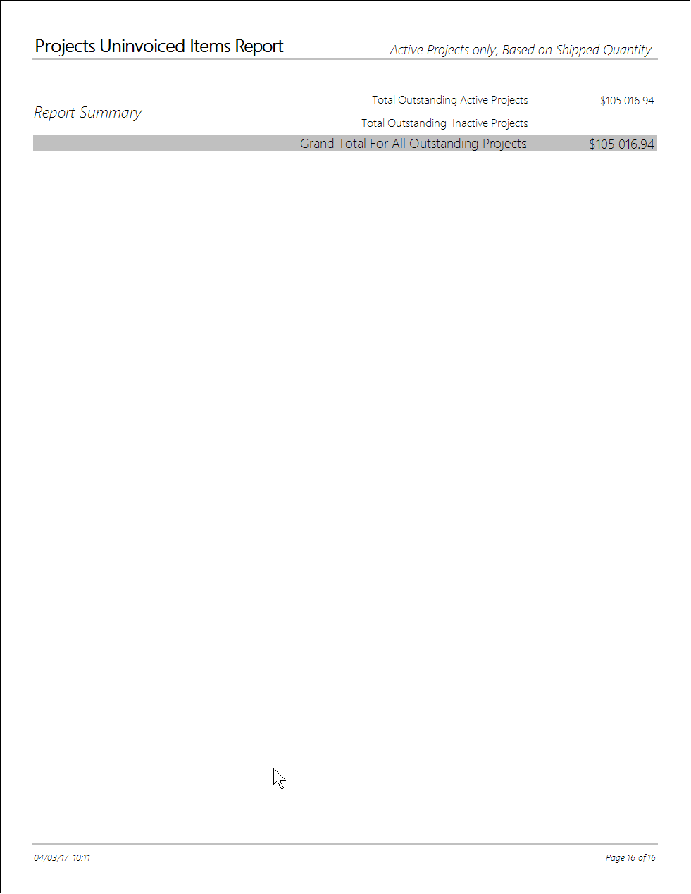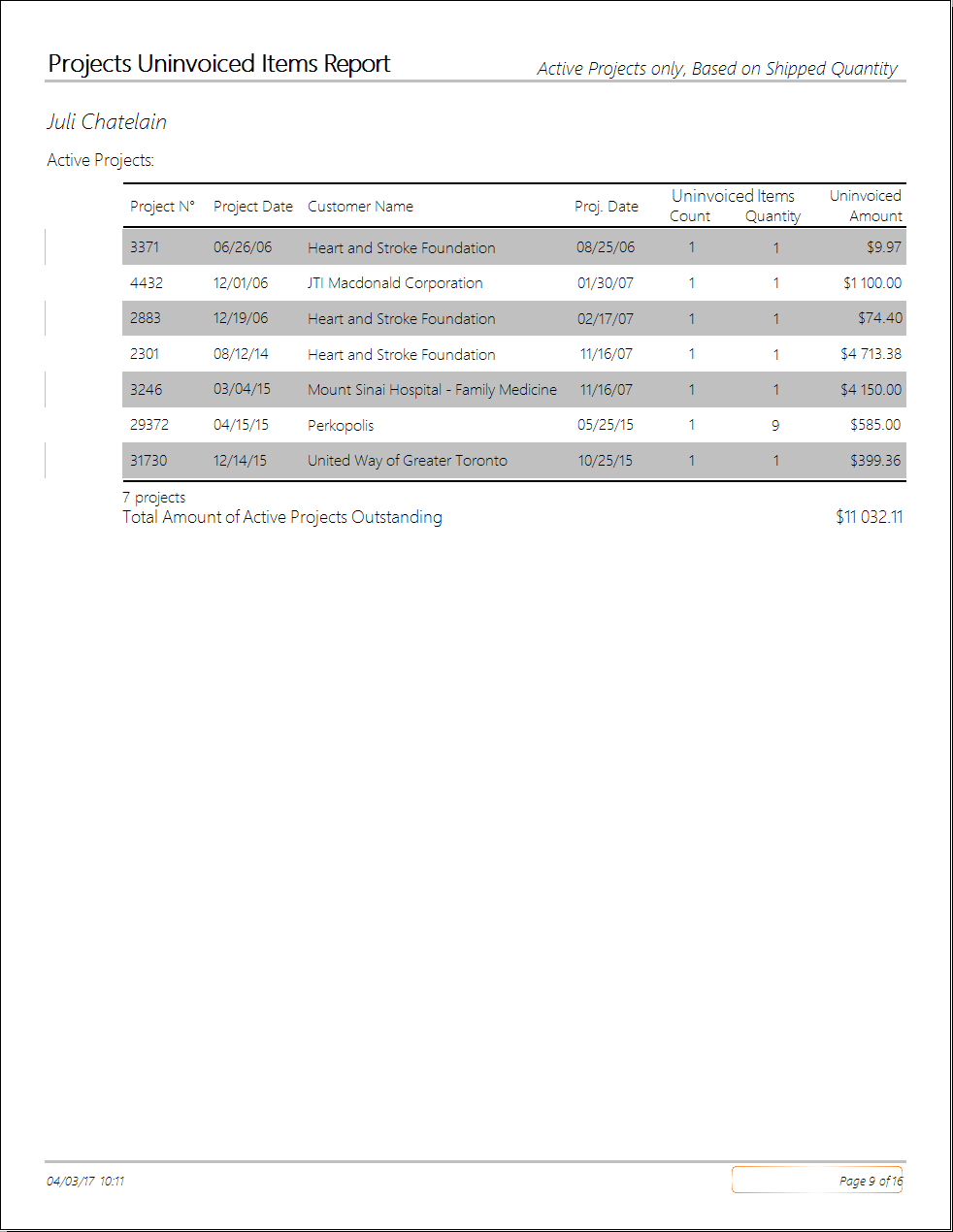 Un-invoiced Items Report Gives you a list of projects partially invoiced with the number of items remaining along with the amount left to invoice.